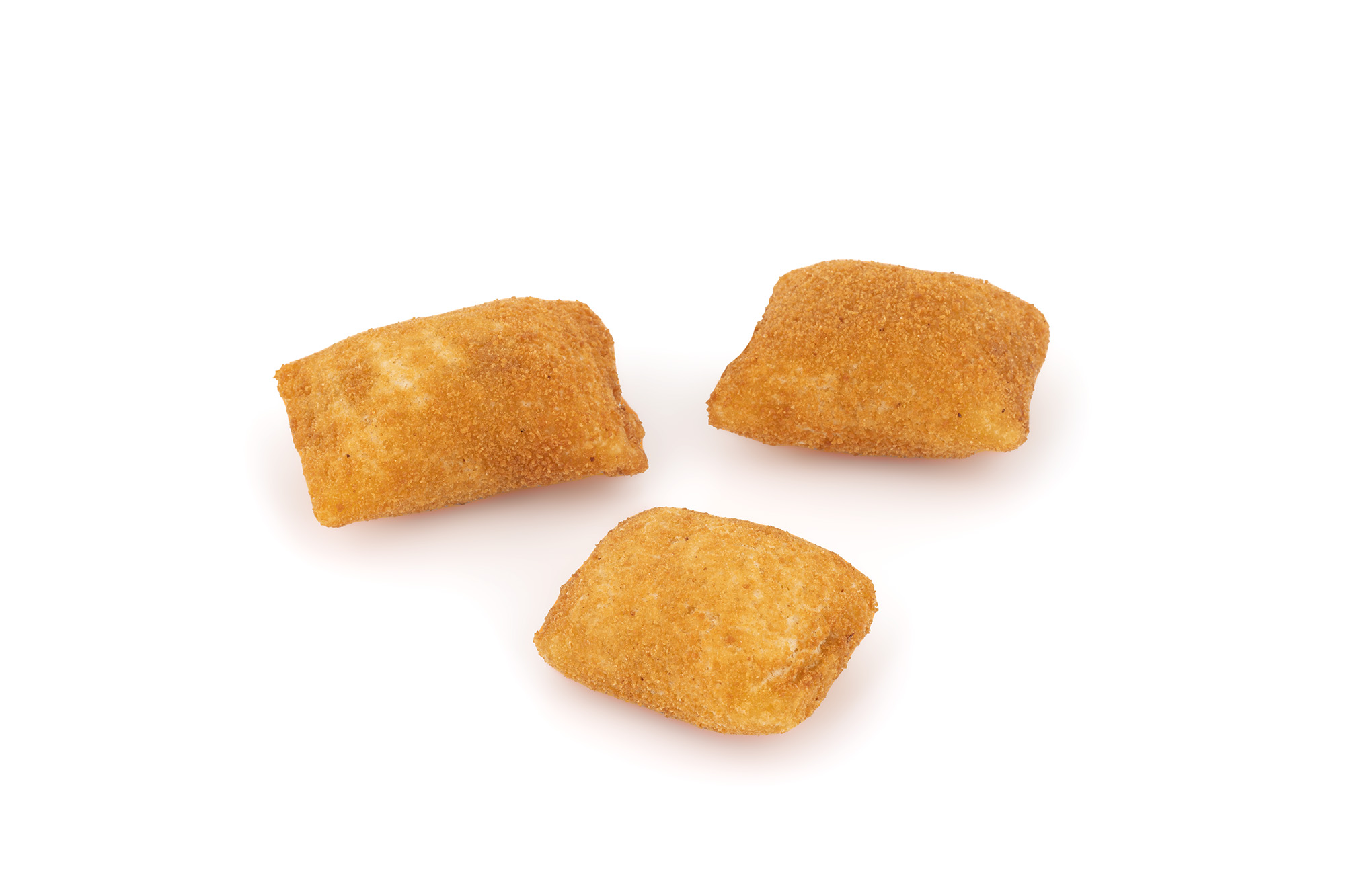 Produto salgado, ultracongelado, recheado leitão estufado e passado por pão ralado.