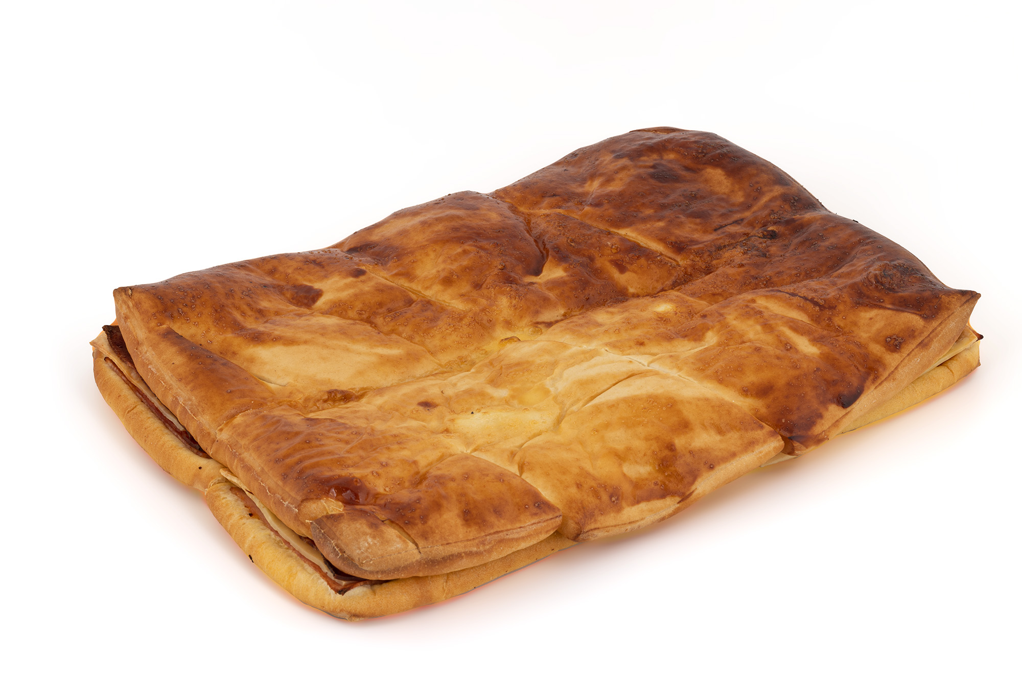 Produto de pastelaria, ultracongelado, confeccionado com massa de bola, recheado com fiambre, bacon, queijo creme pasteurizado e chouriço de colorau.