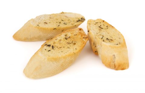 Produto de padaria pré-cozido, ultracongelado, confeccionado com Massa de Trigo, manteiga de alho com ervas aromáticas.