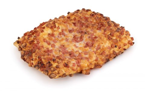 Produto de pastelaria, ultracongelado, confecionado com massa de pão, recheado com molho de tomate com especiarias (orégãos, tomilho, cebola), queijo mozarella picado e fiambre aos cubos.