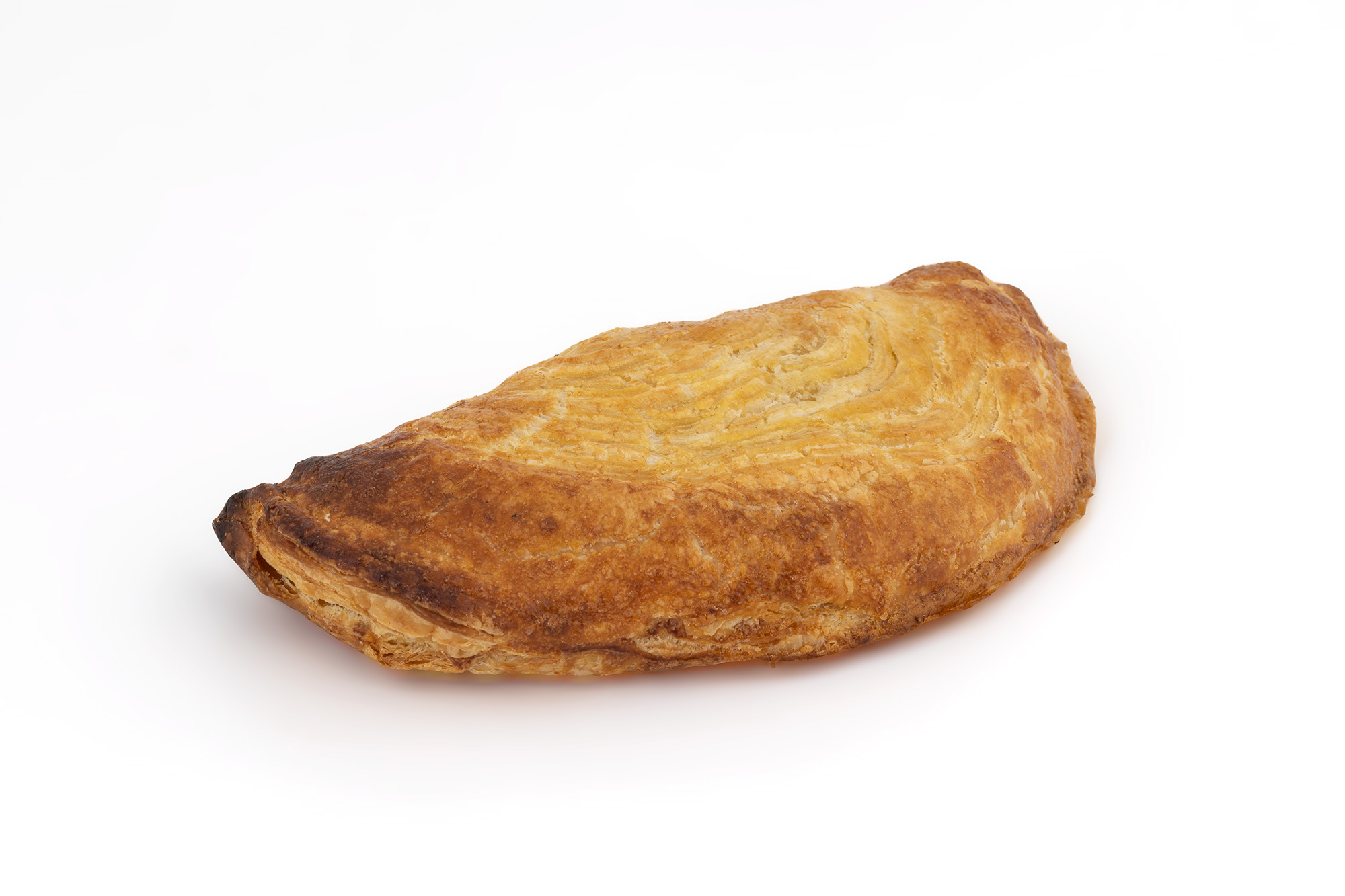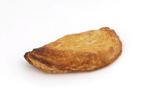 Produto de pastelaria, ultracongelado, confeccionado com massa folhada e recheado com carne de suíno e bovino, estufada.