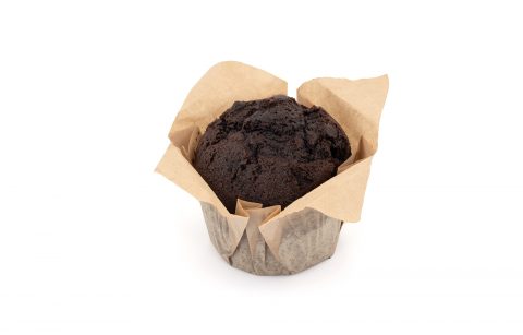 Produto de pastelaria cozido, ultracongelado, confecionado com farinha de chocolate e decorado com gotas de chocolate.